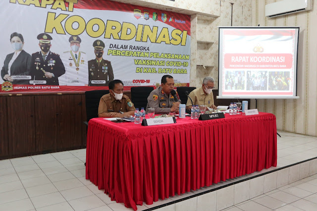 Batu Bara, JournalisNews – Kapolres Batu Bara bersama Pemkab, TNI, dan PT Inalum melaksanakan Rapat Koordinasi dalam rangka Percepatan Pelaksanaan Vaksinasi Covid-19 di Kab. Batu Bara Selasa (22/6/2021).