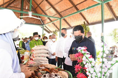 Usai menandatangani prasasti taman konservasi, edukasi dan pemberdayaan masyarakat itu, Menteri BUMN bersama Menteri Perdagangan, Wagubsu dan Bupati Sergai berkesempatan untuk mengelilingi taman serta melihat-lihat berbagai hasil komoditas/kearifan lokal masyarakat yang tinggal di sekitar areal perkebunan PT. Socfindo Bangun Bandar. (Alfian Haris)