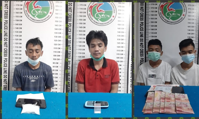Adapun inisial 4 pelaku yang berhasil ditangkap personel Sat Narkoba yaknni Anri (32) warga kota T. Tinggi, Ipur (38) warga Kota T. Tinggi di Dusun.Naga Kesiangan di Kota T. Tinggi, Afandi (19) warga Kota. T. Tinggi dan Rio (19) warga Kota T. Tinggi.