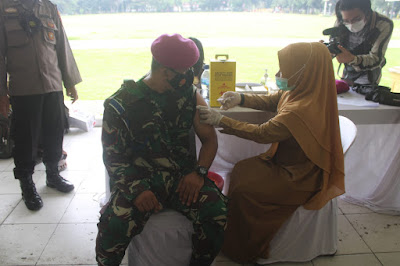 Langkat, JournalisNEWS.com – Komandan Batalyon Infanteri 8 Marinir Letkol Marinir Farick, M. Tr. Opsla menghadiri dan meninjau langsung kegiatan Vaksinasi massal Covid-19 yang bertempat di Alun-alun Stabat, Kab. Langkat, Sumatera Utara. Senin (26/7/2021).
