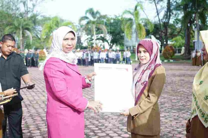 Nagan Raya, JournalisNEWS.com – Penjabat (Pj) Bupati Nagan Raya, Fitriany Farhas, AP., S.Sos., M.Si menyerahkan SK Badan Layanan Umum Daerah (BLUD) kepada 14 Puskesmas se-Kabupaten Nagan Raya. Penyerahan secara simbolis tersebut berlangsung usai acara apel gabungan di halaman kantor bupati, Kompleks Perkantoran Suka Makmue, Senin, (4/3/2024).