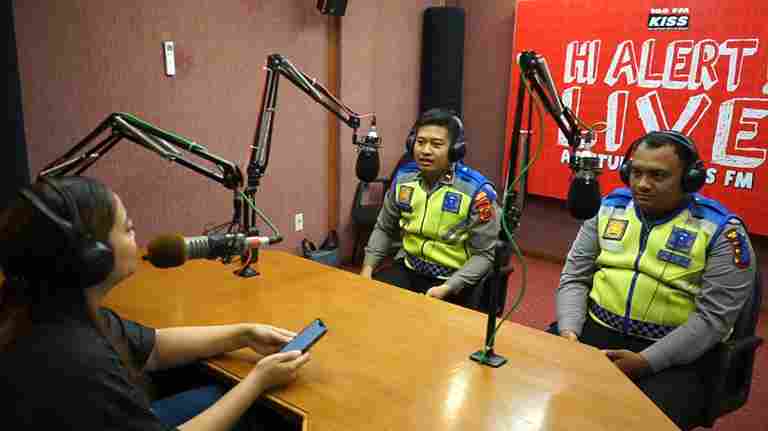Himbauan kami lakukan baik di jalan berinteraksi langsung dengan masyarakat pengguna jalan dan melalui saluran Radio Kiss FM, jadi kami tetap bekerja walau tidak di lapangan namun berada di studio Radio Kiss FM, sedangkan personil Sat Lantas lainnya berada di lapangan yaitu di jalan H.M. Yamin, S.H. cetus Ipda Abdul Malik.