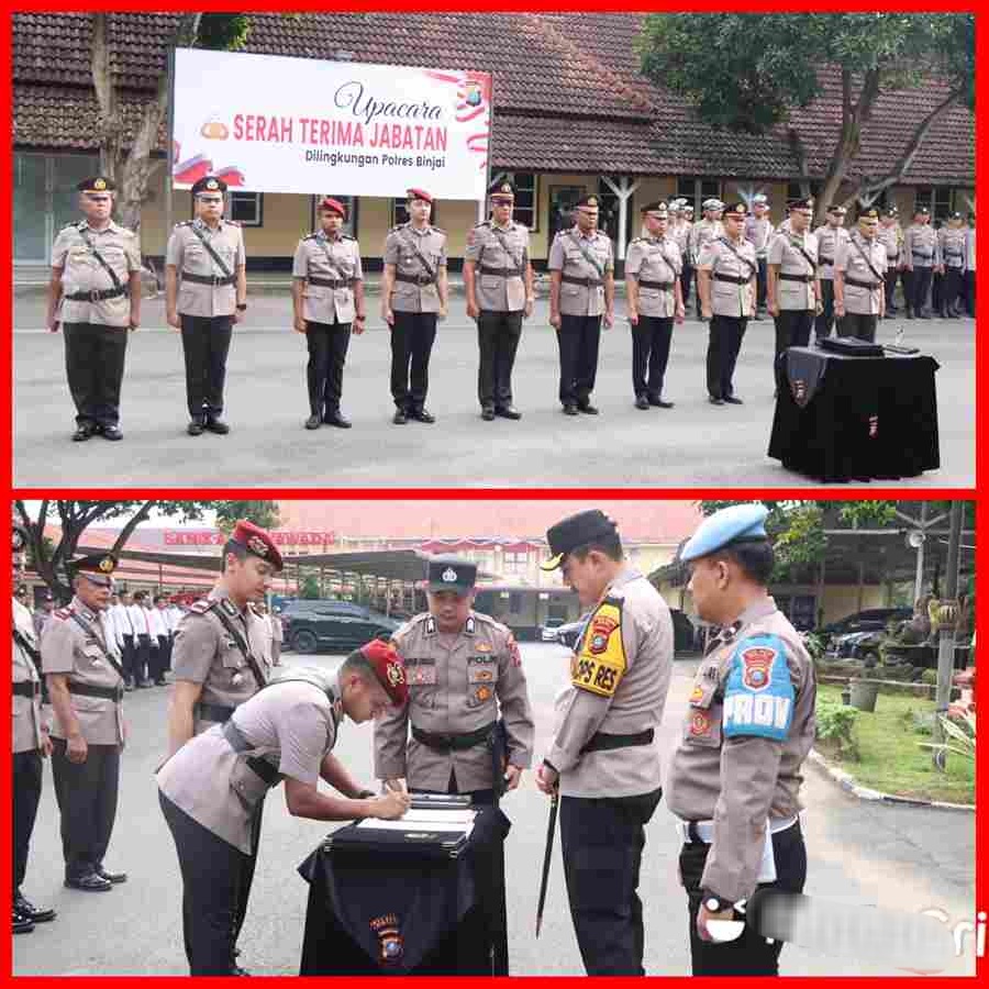 Kapolres Binjai menyerahkan jabatan dari pejabat lama kepada pejabat baru antara lain :