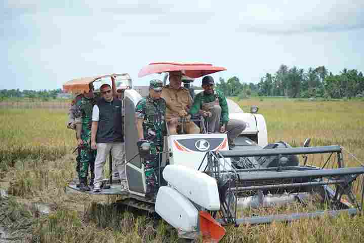 Dalam kesempatan tersebut, Bupati TRK turut secara langsung melakukan panen padi menggunakan mesin combine harvester, menandai dukungannya terhadap modernisasi sektor pertanian dan pemanfaatan teknologi dalam meningkatkan efisiensi panen. Panen dilakukan di lahan persawahan milik petani di Gampong Lueng Baro, Kecamatan Suka Makmue.