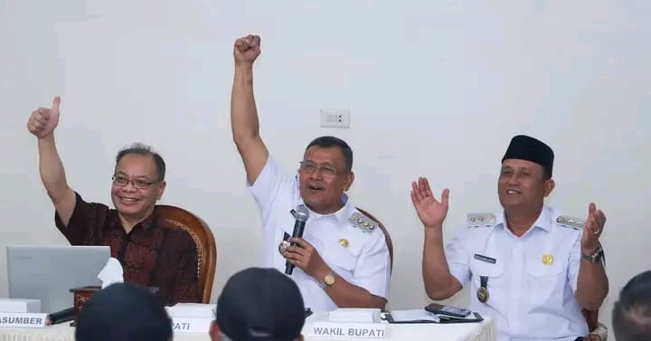 Dairi, JournalisNEWS.com -Sebagai perwujudan Asta Cita penyelenggaraan pemerintahan sekaligus mendongkrak semangat mewujudkan Visi Misi Pemkab Dairi, Bupati Dairi, Vickner Sinaga bersama Wakil Bupati Dairi, Wahyu Daniel Sagala mengajak kepala desa untuk berkumpul, berdiskusi membahas etos kerja dalam rangka membangun Kabupaten Dairi yang semakin baik, Rabu (9/4/2025) di Pendopo Bupati.