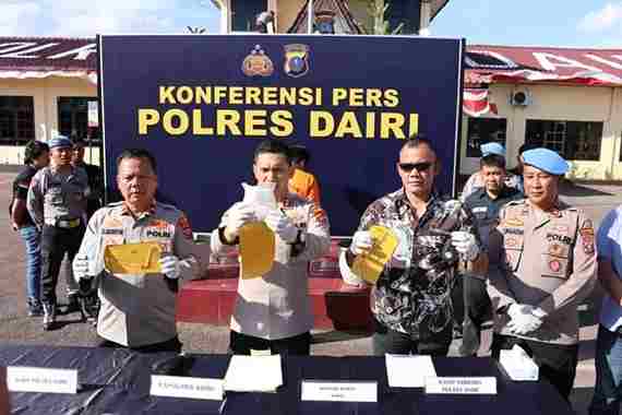 Dalam konferensi pers di halaman Mapolres Dairi, AKBP Otniel Siahaan selaku Kapolres mengatakan, tersangka diamankan di tengah jalan tepatnya di Jalan Lintas Medan – Sidikalang Kecamatan Sitinjo Kabupaten Dairi.