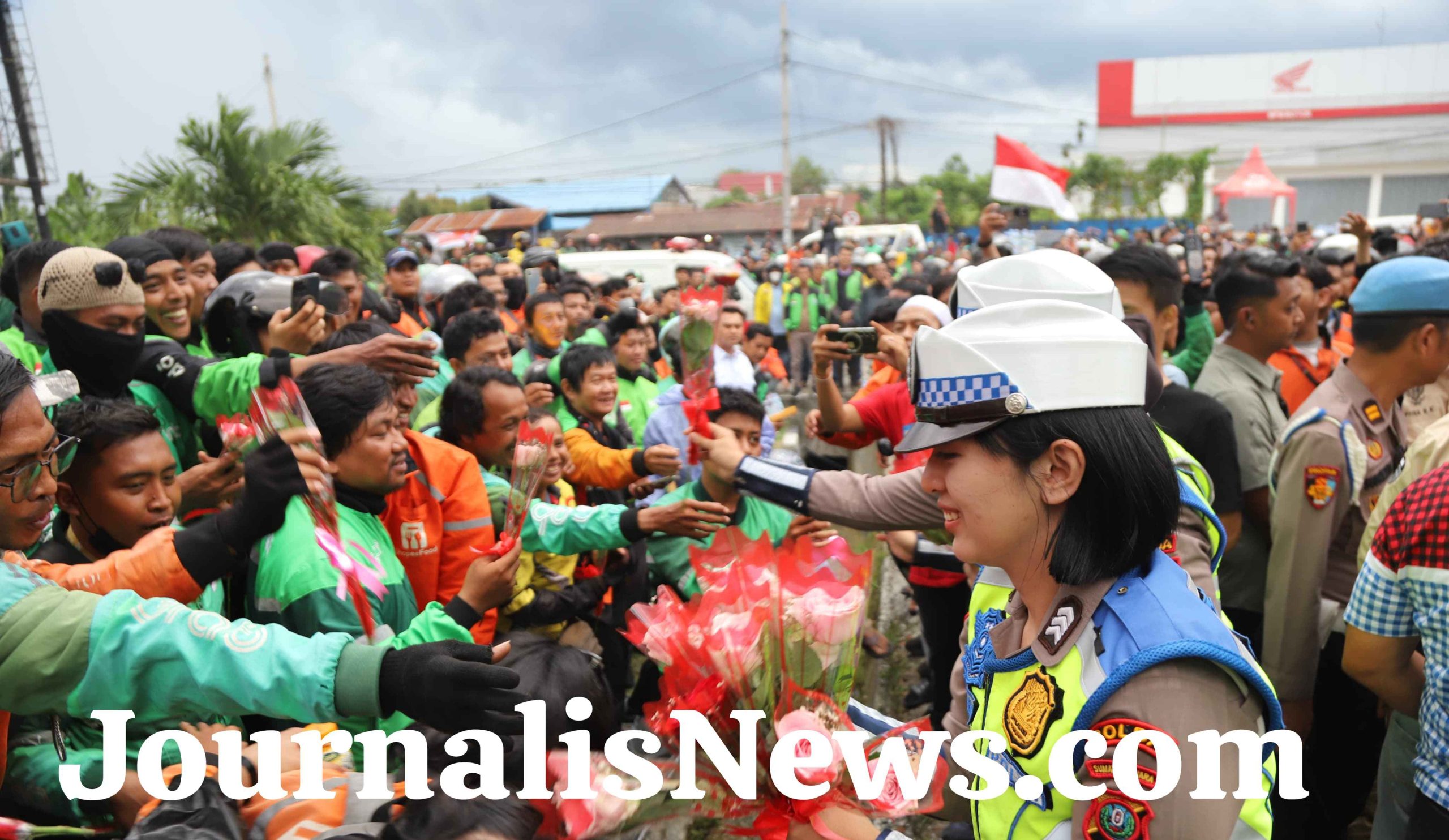 Momen penuh kehangatan hadir saat Polwan Polda Sumut menyerahkan bunga satu per satu kepada para driver ojol. Kehadiran bunga di Hari Jadi Polwan ke-77 itu menjadi lambang kasih, doa, serta tekad kepolisian untuk selalu merangkul masyarakat.