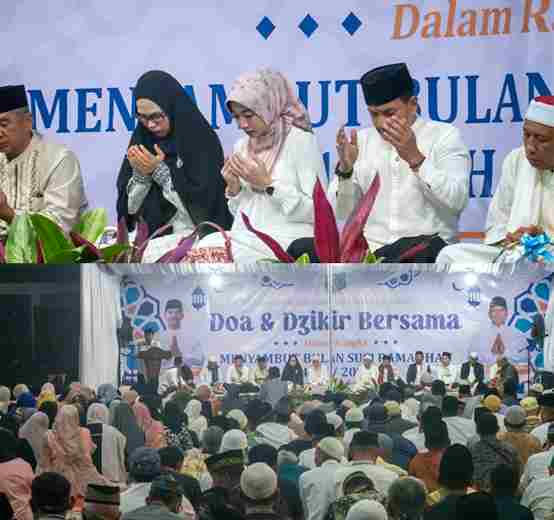 Ribuan warga masyarakat Kota Tebing Tinggi mengikuti acara Doa dan Dzikir Bersama Sekaligus Punggahan Dalam Rangka Menyambut Bulan Suci Ramadhan 1447 Hijriah, Senin malam (16/2/2026) di lapangan Merdeka, Jalan Dr. Sutomo.